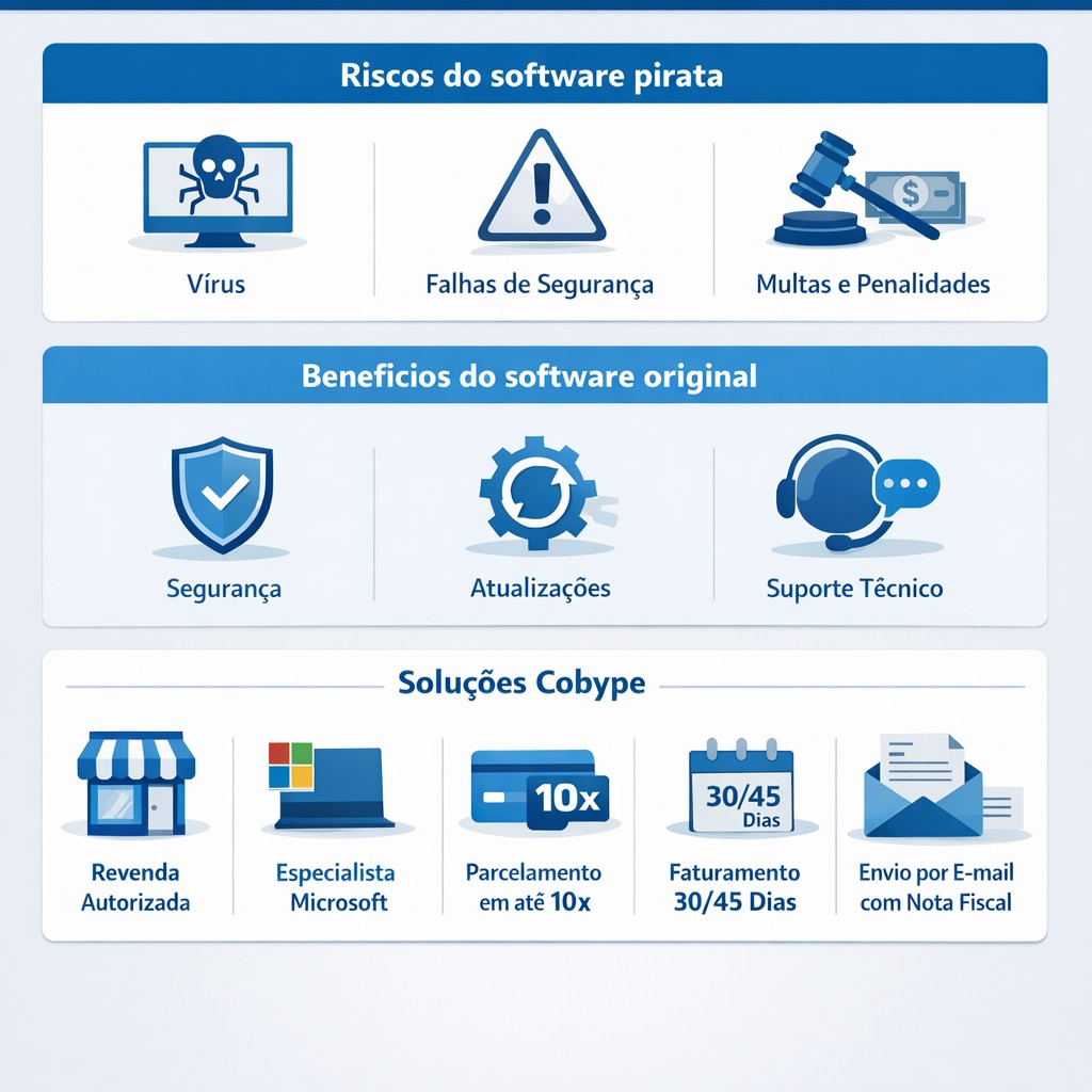 Sem licença original, sua empresa fica desprotegida, sem atualizações críticas e sem suporte técnico oficial.